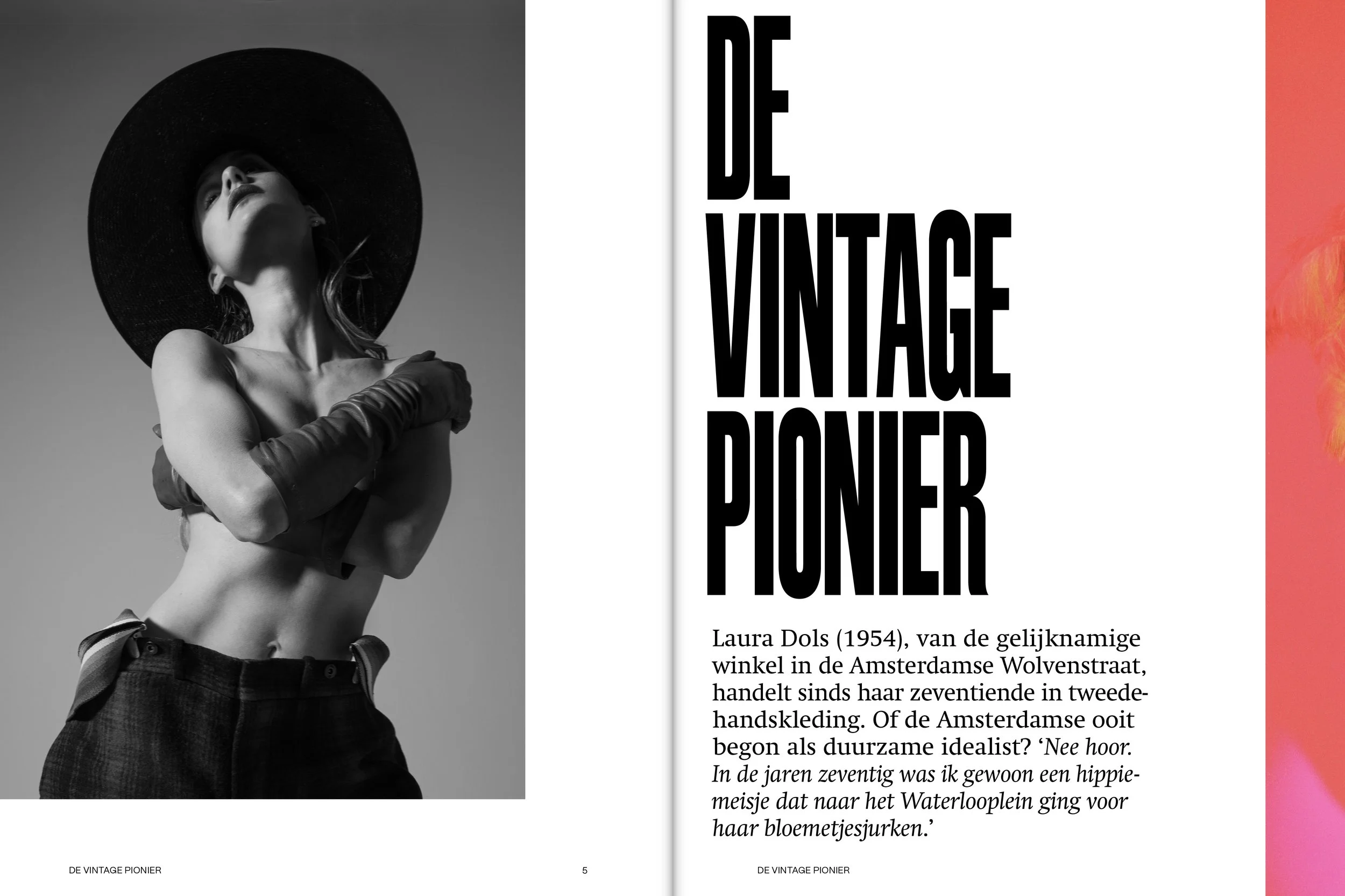 STIMULEREND Hoe ziet Vintáááge + duurzaam + circulair eruit? De grafische vormgeving en fotografie van Vintáááge + duurzaamheid + circulariteit is vernieuwend, fris met grafische ingrepen die het lezen van artikelen stimuleren. Nee, dit blad gooi je echt niet weg.